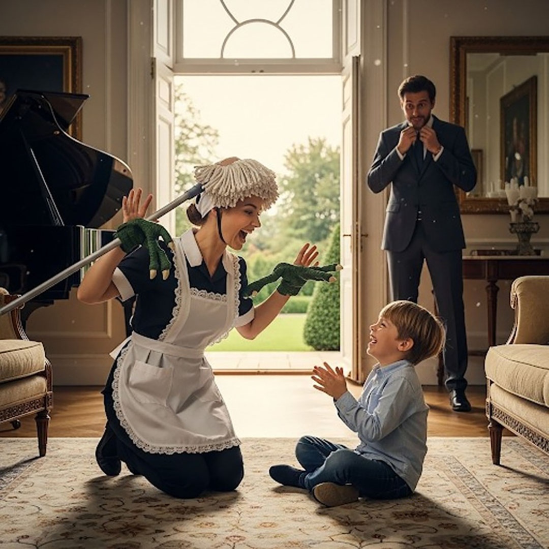 De retour plus tôt que prévu d’un déplacement, Julien décide de surprendre son fils. Il entre silencieusement, un nouveau jouet à la main, et s’immobilise dans l’entrée. Dans le salon, Camille joue les dinosaures déjantés, une serpillière en guise de crinière, en poussant des grognements hilarants. Léo rit de bon cœur… et se blottit contre elle en murmurant :