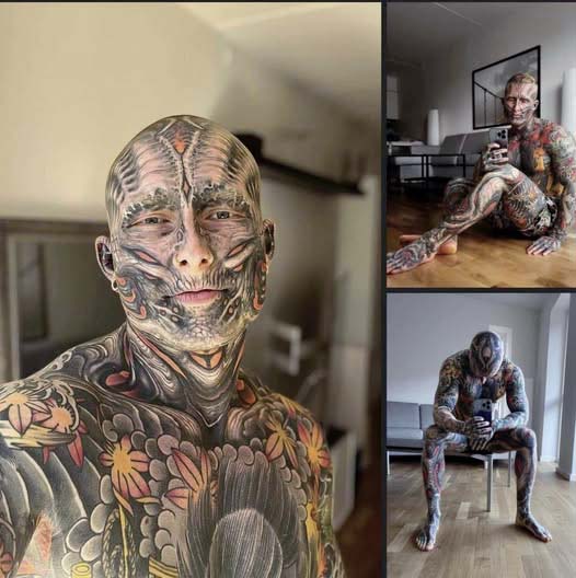 Recouvrir 95 % de son corps de tatouages représente non seulement un choix esthétique, mais aussi un défi physique et mental considérable. Certains endroits, comme le visage et le crâne, sont particulièrement sensibles à la douleur du tatouage.